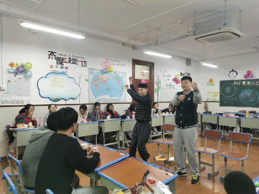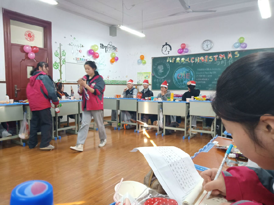 这次班会课,本班开展了圣诞晚会,主要以玩游戏,吃吃喝喝为主。