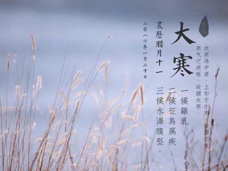 二十四节气中最后一个节气,每年120日前后太阳到达黄经300°时为大寒。大寒,是天气寒冷到极点的意思。《授时通考·天时》引《三礼义宗》:大寒为中者,上形于小寒,故谓之大......寒气之逆极,故谓大寒。这时寒潮南下频繁,是我国大部地区一年中的寒冷时期,风大,低温,地面积雪不化,呈现出冰天雪地、天寒地冻的严寒景象。大寒是中国二十四节气中的最后一个,过了大寒又立春,即迎来新一年的节气轮回。