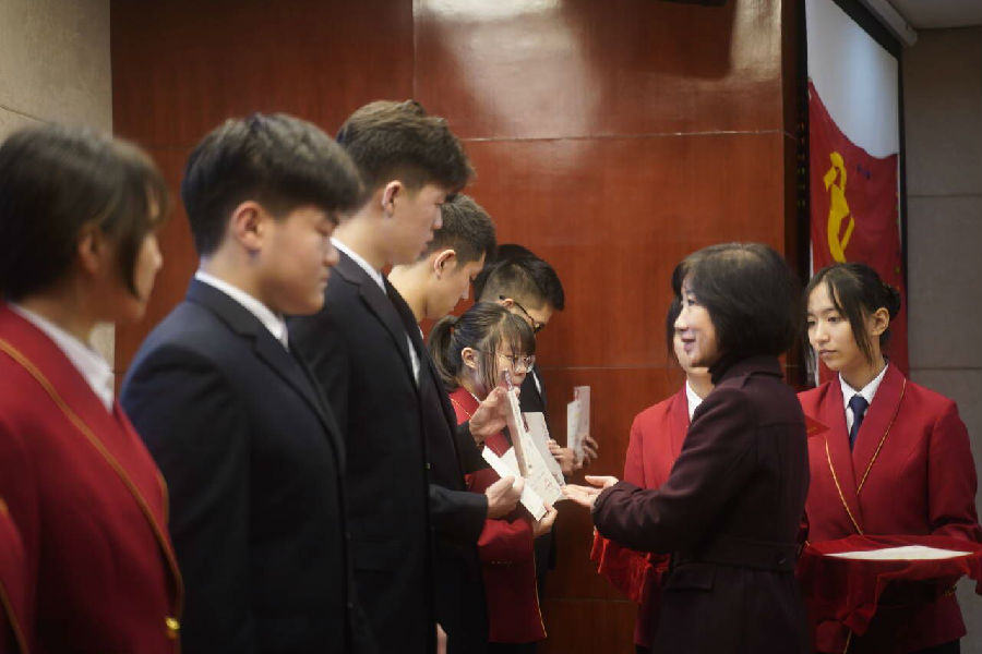 2020年11月27日,我校于文化中心一楼会议室召开第三届青马工程结班仪式,邀请到朱校长为学员们颁发结业证书。