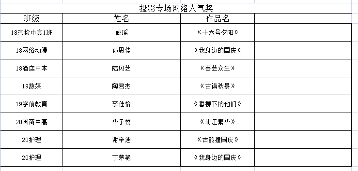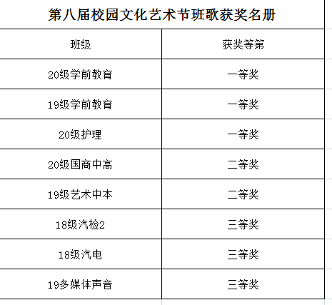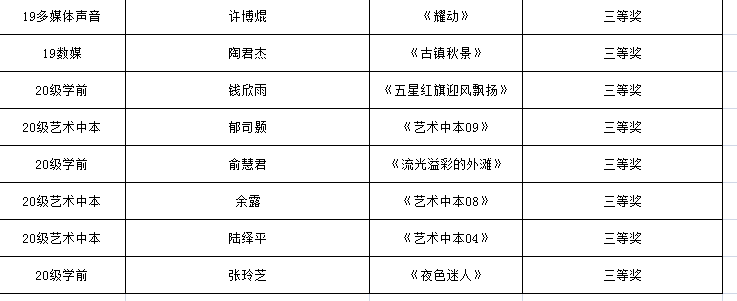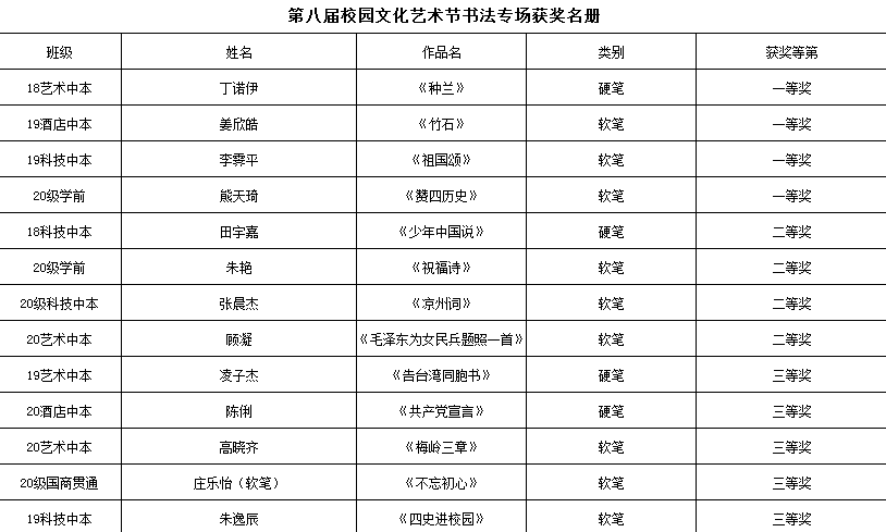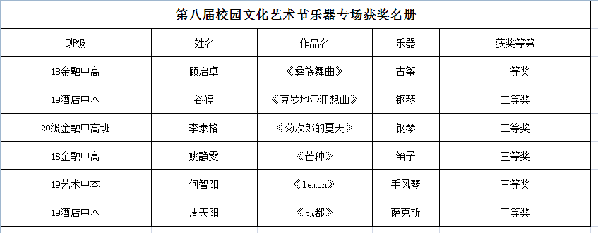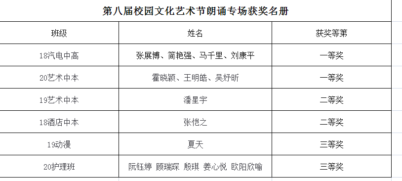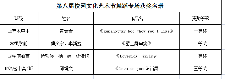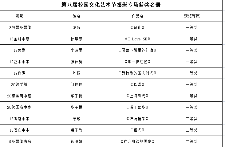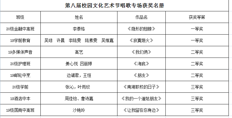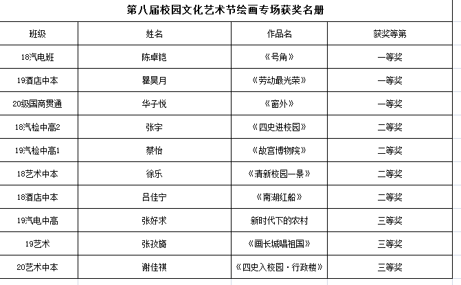 【南湖职校】第八届校园艺术节获奖名册
