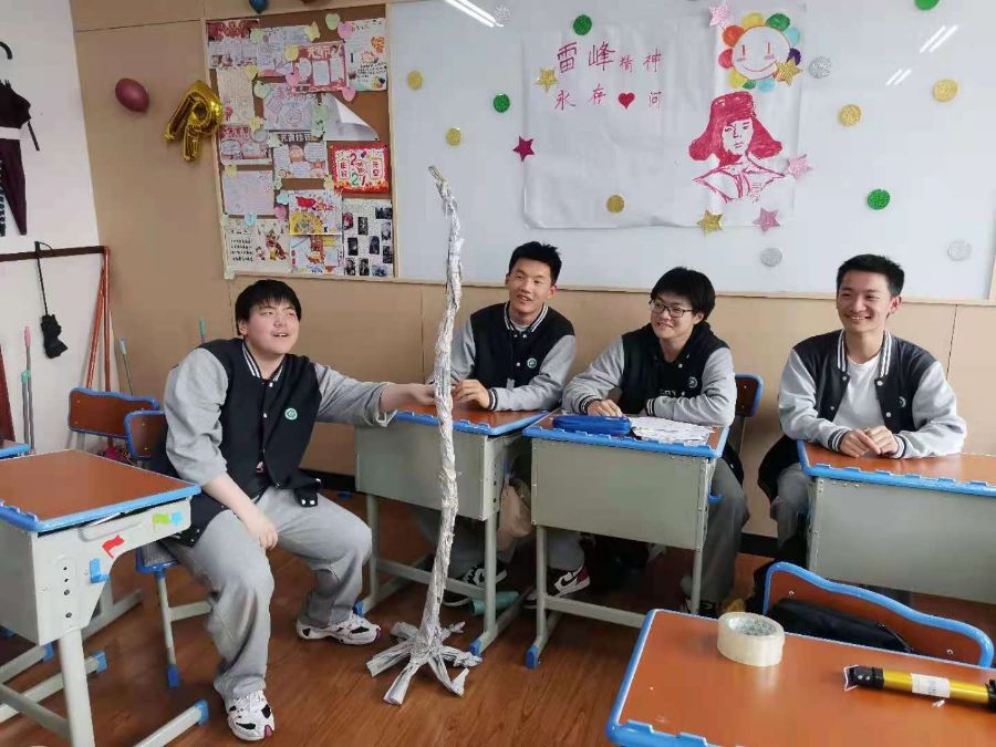 同学感想:虽然我们组的高塔并不是最高最稳的,但是是我们组四个人通过半个小时的努力,克服了人数和材料问题坚持到了最后取得的成功。团队精神是一切事业成功的基础,没有团结协作,一切都只能各自为政,一盘散沙。个人的成长与团体就像生意,鱼与水紧密联系。这个游戏一个人是绝对不可能在30分钟里像大家一起努力共同的塔那样的高大,通过这次的活动我们更加相信了伙伴之间的羁绊,我们一起为了同一个目标努力的过程才是最重要的。我们四个人心中的高塔也并没有因为一次失利而倒下。